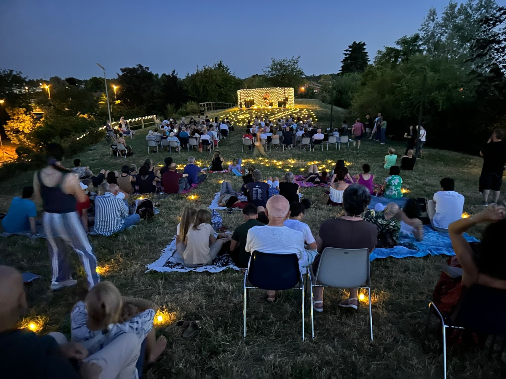 L’appuntamento, così come i prossimi in programma, si è svolto in una location inedita, la collina del parco Matteotti, dove le note hanno preso vita in un’atmosfera fuori dal tempo, fatta di pop emozionale, jazz avvolgente e raffinati omaggi ai grandi capolavori dei generi. Con il palco immerso nel verde e avvolto solo dalla luce soffusa di lanterne, candeline e fili di lucine, «La collina incantata» non vuole essere solo un evento musicale, ma anche un’esperienza sensoriale e intima.