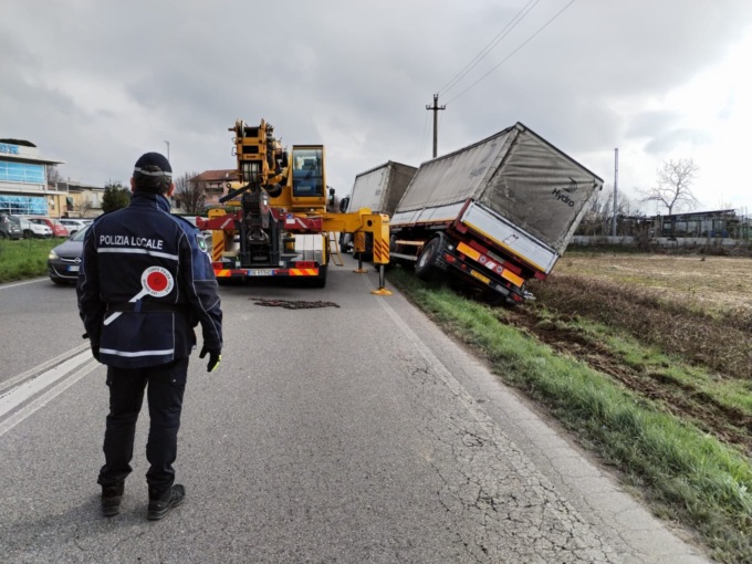 Un tir è finito in un fosso lungo la Strada Provinciale 2, in direzione di Trezzo, sul territorio di Bellusco: nessuno è rimasto ferito, ma il traffico sull’arteria è in tilt.
