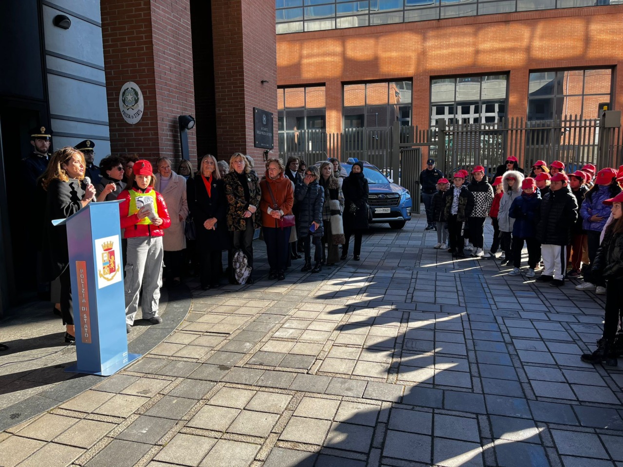 Prima del taglio del nastro e della benedizione impartita da Don Andrea Lotterio, le autorità hanno incontrato gli studenti delle classi quarte e quinte della Scuola De Amicis di Lecco, presenti in Questura in un giorno simbolico per la dignità, la protezione e la tutela di tutte le donne. Questi ragazzi, che già svolgono il ruolo di guardiani del parco di via Filzi, hanno ascoltato il Questore invitandoli a essere sempre vigili e a denunciare ogni sospetto di violenza.