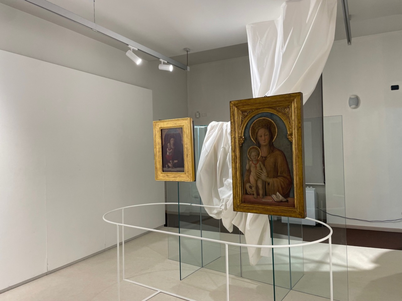Il percorso è suddiviso in ambienti distinti per cromie e materiali, con una sezione dedicata alla Nascita di Maria e una alle Madonne col Bambino.