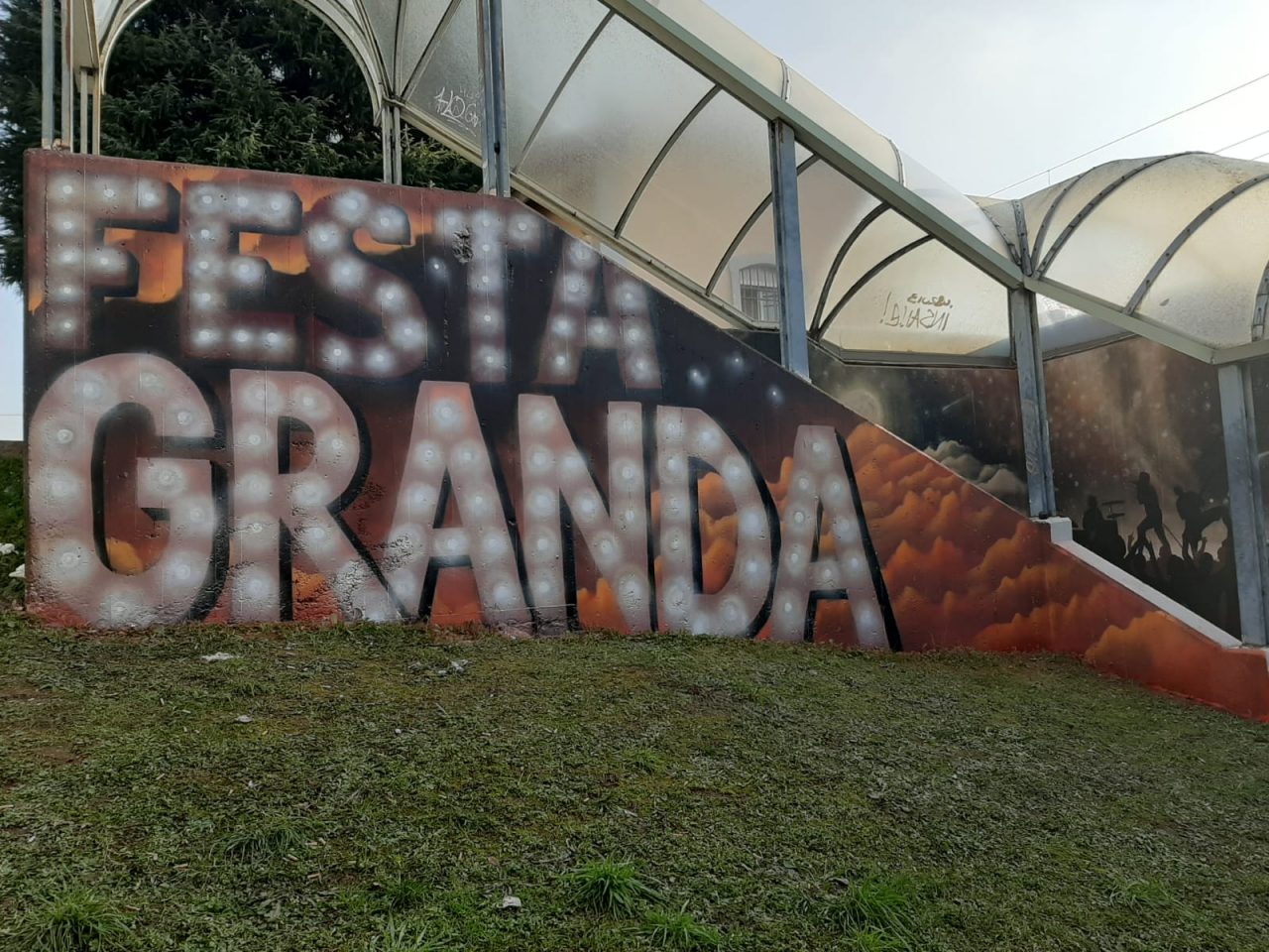 Dopo la raffigurazione dei patroni del paese (Santo Stefano, San Gregorio e San Zenone), la coppia è in fase di realizzazione del ponte del viadotto, simbolo ottocentesco del Comune. Inoltre, sempre nella parete, verranno raffigurate le piscine del paese e il collegio di Celana, a testimonianza di una valorizzazione complessiva del territorio voluta fortemente dall’Amministrazione comunale di Cisano Bergamasco.
