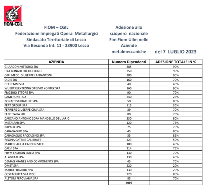 Al termine del presidio i segretari sono stati ricevuti da Paola Cavalcanti, viceprefetto aggiunto di Lecco alla quale hanno sottoposto il documento unitario inerente alla centralità del lavoro metalmeccanico.