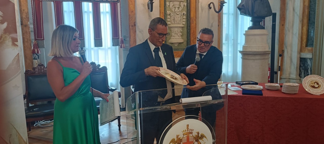 Oltre all’attestato anche un omaggio ai premiati realizzato dall’artigiano salentino Agostino Branca: un piatto in ceramica raffigurante Colombo.