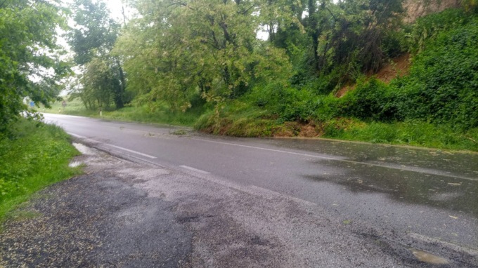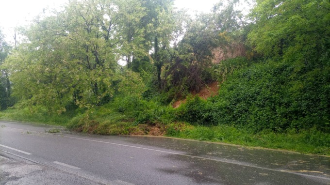 Disagi lungo la Provinciale tra Montevecchia e Missaglia per il cedimento di un versante, con alberi finiti in mezzo alla carreggiata.