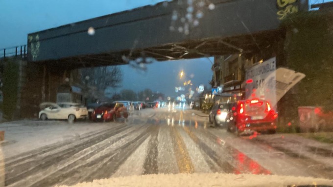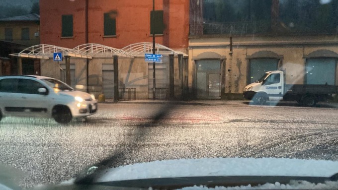Maxi grandinata a Lecco, città imbiancata: Natale o primo aprile?