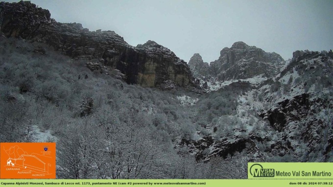 “Condizioni di tempo instabile per via di una perturbazione in transito sull’Italia. Tempo a tratti perturbato. Miglioramento del tempo sula Lombardia dalla prossima notte – spiegano gli esperti di Meteo Val San Martino  – Oggi, domenica 8 dicembre giornata con cieli molto nuvolosi o coperti. Possibili brevi aperture. Attenzione alla nebbia in pianura e lungo l’Adda nelle ore più fredde. Precipitazioni di debole intensità. Il tutto caratterizzato da pause asciutte. Quota neve oltre gli 800-1000 metri, in serata possibile anche a quote più basse 500-600 metri. Temperature minime in aumento, massime stazionarie o in calo. Minime nelle zone da noi monitorate tra -2.6 gradi di Valcava e +3.2 gradi di Olginate e Calolziocorte. Venti da deboli a moderati settentrionali, con rinforzi in quota. Venti da deboli a moderati settentrionali, con rinforzi in quota”.