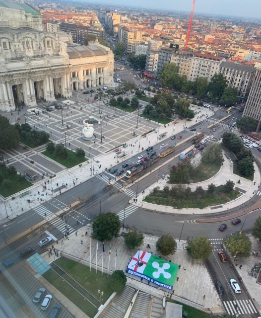 A otto anni dal referendum per l’autonomia del 22 ottobre 2017, la Lega ha celebrato l’anniversario con un flash mob davanti a Palazzo Pirelli, sede del Consiglio regionale della Lombardia, srotolando un bandierone da 150 metri quadrati con i simboli della Lombardia e la scritta ‘Autonomia e Identità”. Presente anche il sottosegretario alla presidenza della Regione Mauro Piazza.