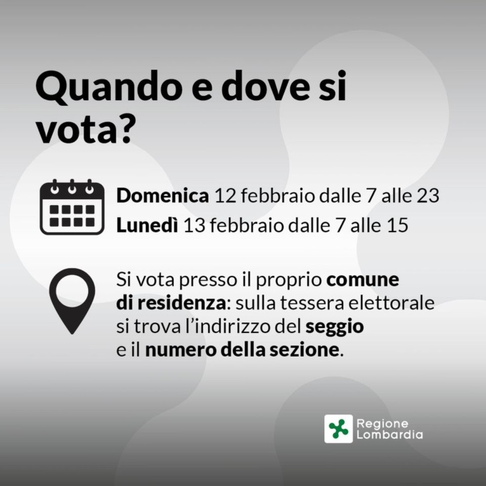 E’ giunto il momento delle elezioni regionali: domenica 12 dalle 7 alle 23 e lunedì 13 febbraio dalle 7 alle 15 si vota.