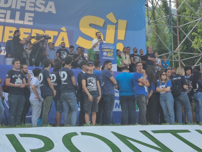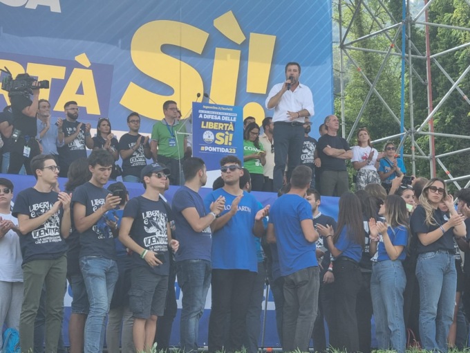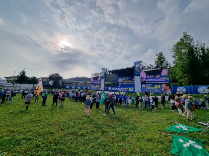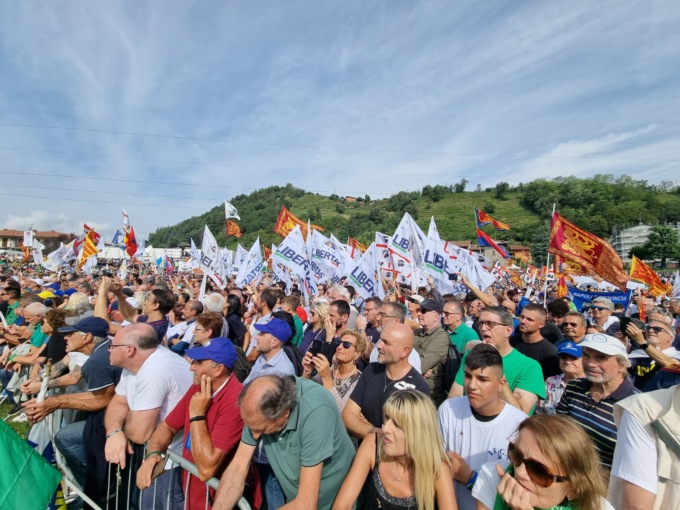 Dalle 10 sul palco si sono alternati numerosi esponenti del Carroccio, all’ora di pranzo – per non mancare l’appuntamento con i tg – parlerà il “Capitano”. In programma anche un momento di ricordo per Roberto Maroni e Silvio Berlusconi.