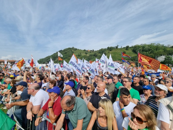 Sul pratone che si affaccia sulla Provinciale, come sempre, anche tanti militanti leghisti provenienti dal nostro territorio, ma anche dal resto d’Italia.
