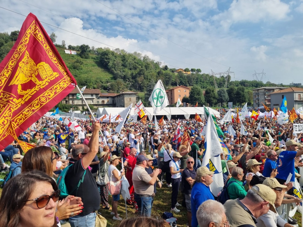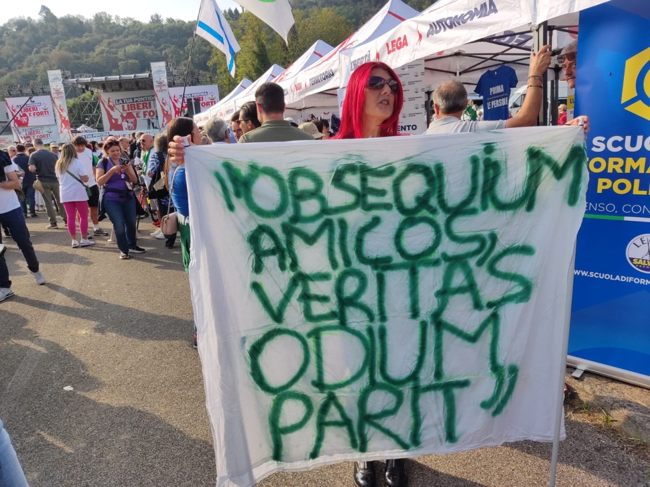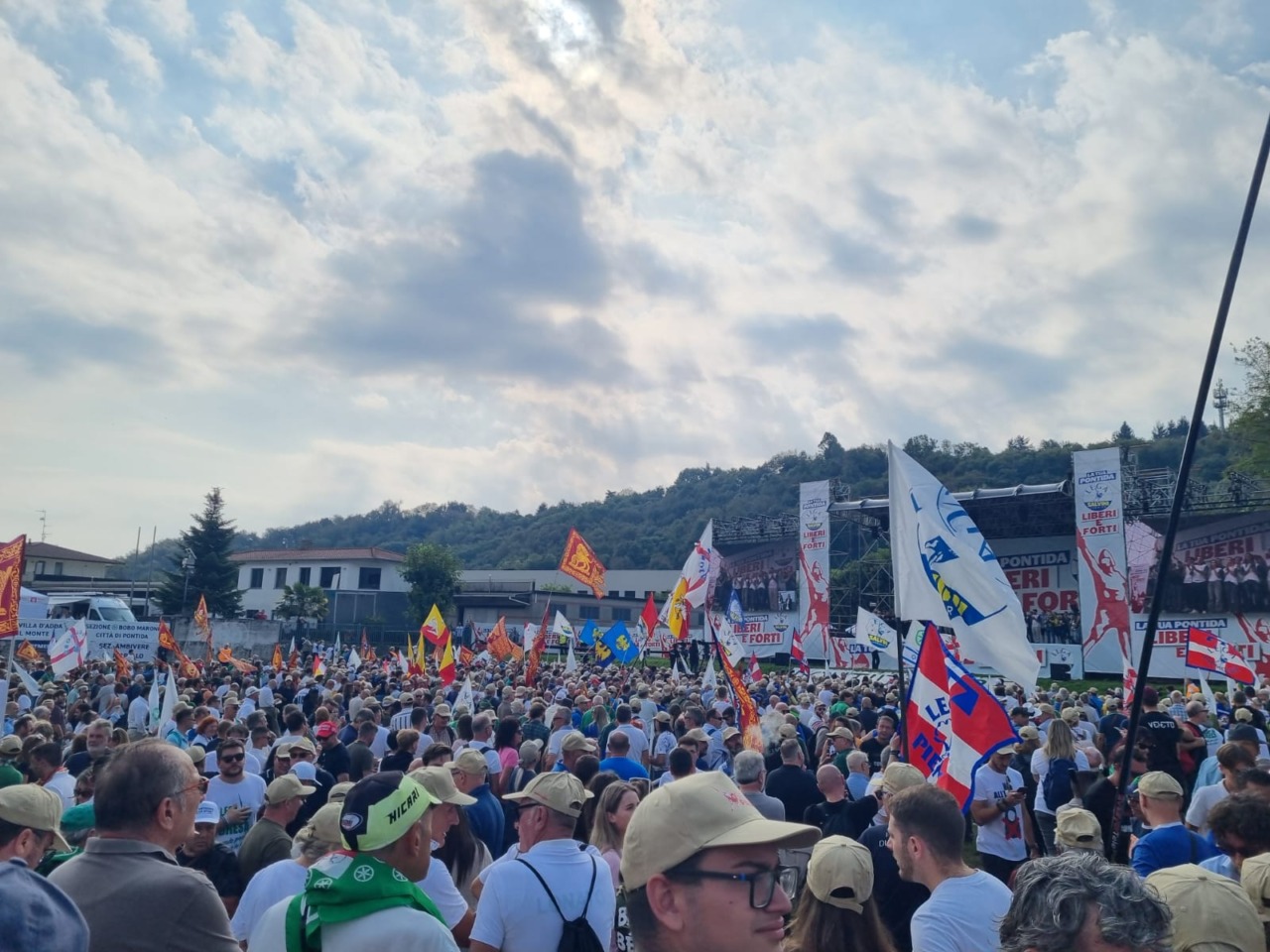 Cori e scritte hanno ribadito orgoglio per l’identità leghista e posizioni critiche sull’immigrazione, mentre il Pratone si conferma luogo simbolico in cui tradizione, politica nazionale e collegamenti internazionali si incontrano.