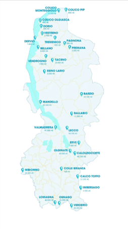 - Area Sud: tutta la parte bassa della Provincia di Lecco