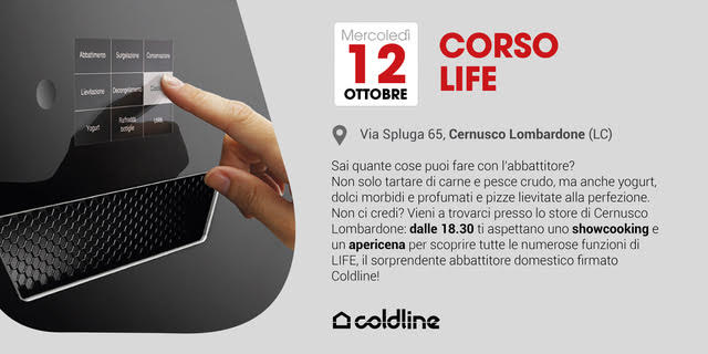 Mercoledì 12 ottobre dalle ore 18:30 nello showroom Brianzarreda di Cernusco Lombardone ti aspetta il CORSO LIFE, un evento firmato Coldline.