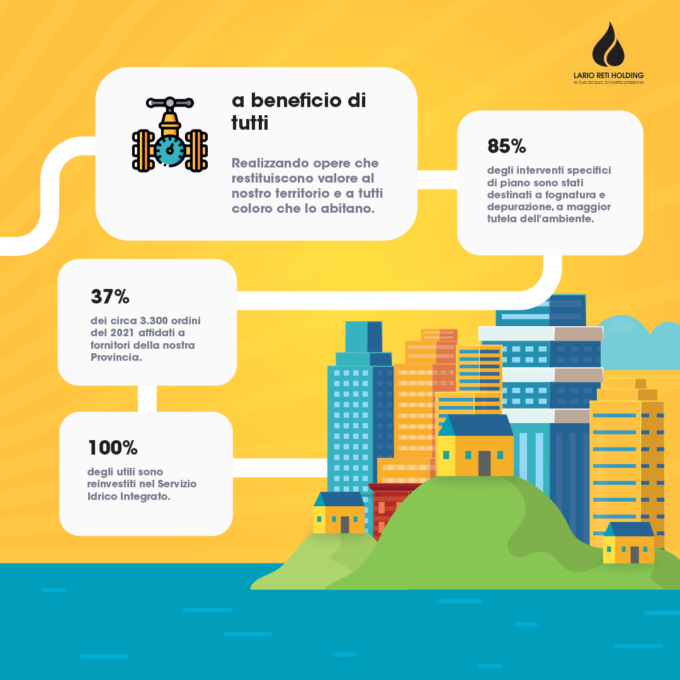 È con questo spirito che la Società punta al miglioramento costante della qualità dei servizi offerti tramite procedure operative efficaci, formazione del personale e innovazione continua, così da conseguire la soddisfazione dei cittadini, che costituisce un obiettivo fondamentale e imprescindibile per Lario Reti Holding. L’azienda si preoccupa di prelevare e restituire all’ambiente una risorsa preziosa come l’acqua, garantendone la qualità e prestando un’attenzione sempre crescente verso la massima tutela della risorsa, con il fine di sostenere il benessere della popolazione e garantire la disponibilità costante di questa risorsa.