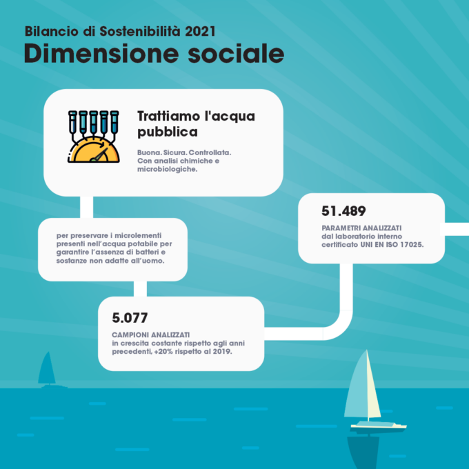 Il macro-capitolo relativo alla Dimensione Sociale è stato dedicato completamente alla rendicontazione dell’impatto di quelle attività del Servizio Idrico Integrato che riguardano da vicino i clienti e il territorio, in termini di erogazione e qualità dell’acqua, fatturazione, servizio clienti telefonico e di sportello, servizio di Pronto Intervento, attività web e di comunicazione etc.