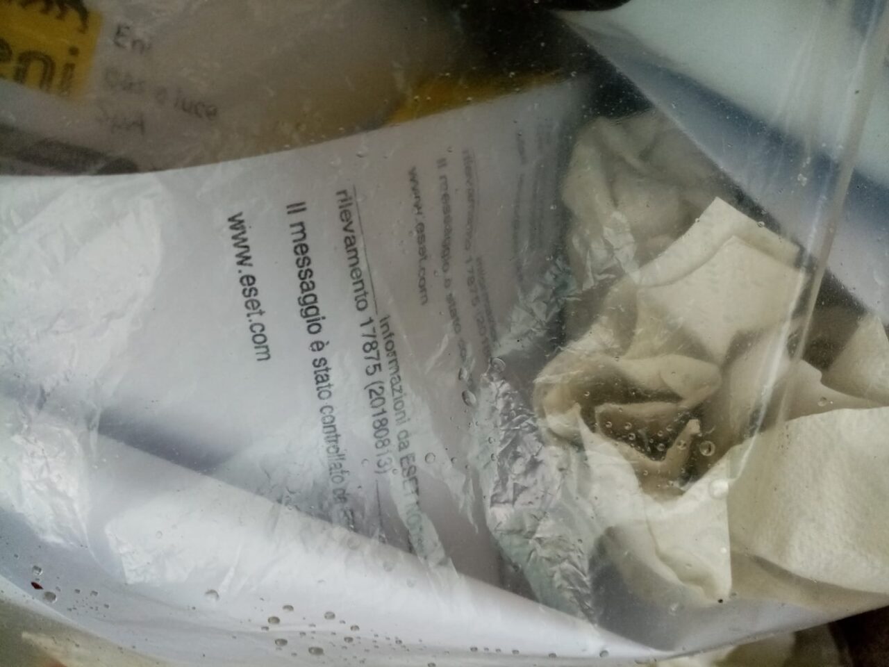 Almeno i fogli fossero stati passati nel tritacarta… Poi anche altro materiale riciclabile spunta dal trasparente. Sappiamo già le giustificazioni: quelli delle pulizie… E giovedì saranno raccolti?