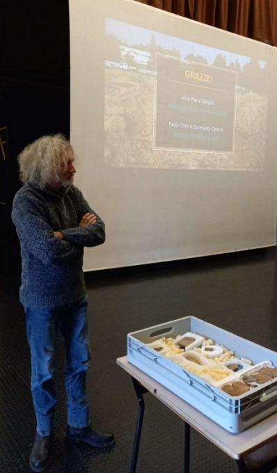 “Protagonisti” della lezione i  reperti attribuibili all’era neolitica ritrovati durante gli scavi al cantiere della nuova scuola media. Grazie alla disponibilità della Soprintendenza e degli specialisti archeologi coinvolti e alla ricettività del dirigente e dei docenti della scuola media, è stato possibile organizzare tre sessioni espositive per le tre classi della scuola media.