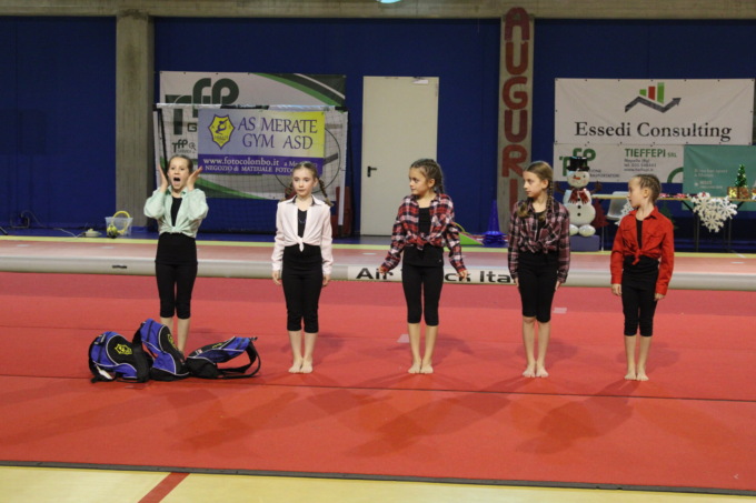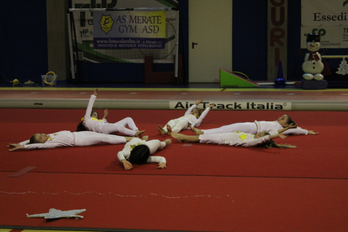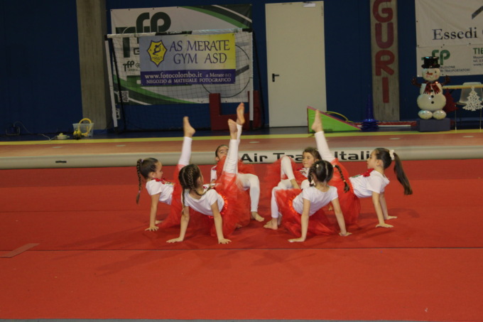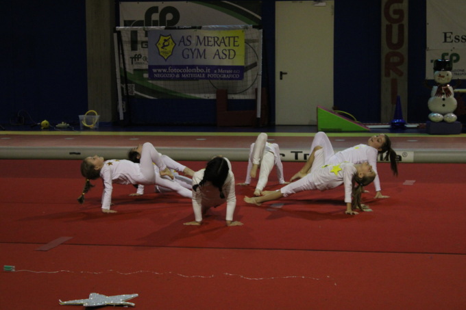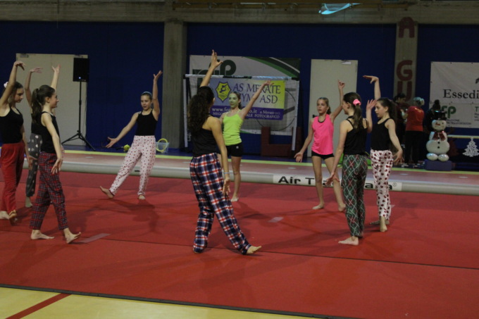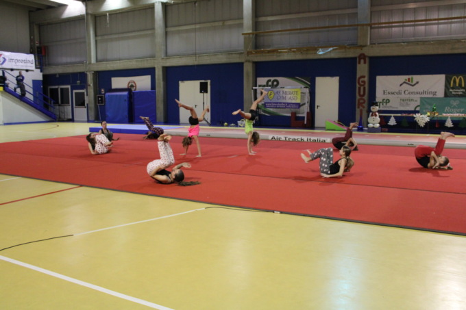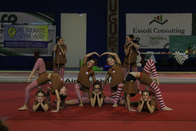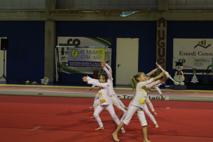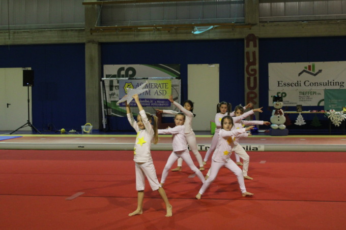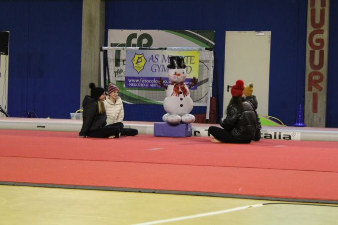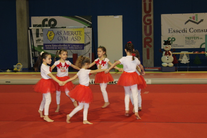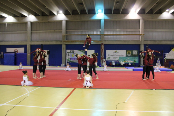Ad aprire lo spettacolo sono stati i due gruppi baby gym seguiti dalle istruttrici Elena, Chiara, Alessandra e Sabrina che si sono esibiti personificando la Befana; il gruppo base invece di Martina, Simona e Greta ha rappresentato le renne e Babbo Natale; spazio poi al gruppo intermedio 1 con Alessandra e Claudia che hanno ricreato la magia delle stelle di Natale, il corso intermedio 2 di Emma, Claudia e Giulia invece ha rappresentato in pedana i fiocchi di neve. Immancabile la rappresentazione de Il Grinch con il gruppo medie insieme alle istruttrici Simona e Martina; il Ginger Red con il corso Start elementari seguito da Greta mentre il gruppo Esordienti di Mariaelena e Marta si è esibito portando in scena i simboli del Natale. Il gruppo Start medie Babbo Natale (seguito da Debora e Greta), il gruppo Avanzato agonistico 2 di Elena e Chiara alcune scene del film “Mamma ho perso l’aereo” e il gruppo Avanzato agonistico 1 di Debora e Greta la settimana bianca con tanto di sci e palle di neve.