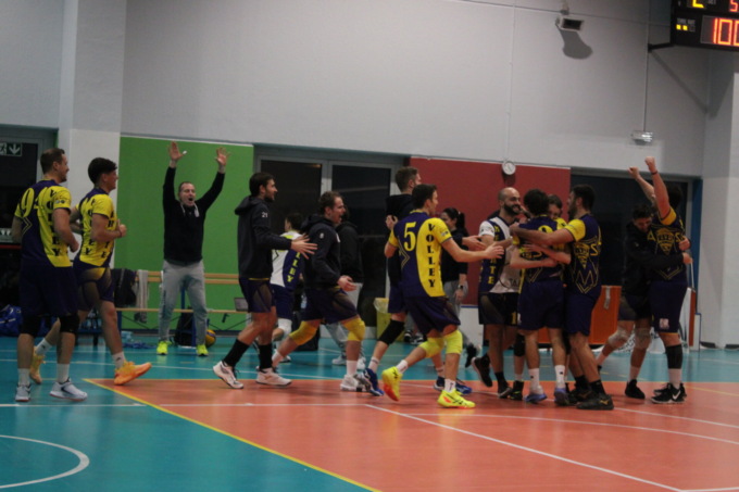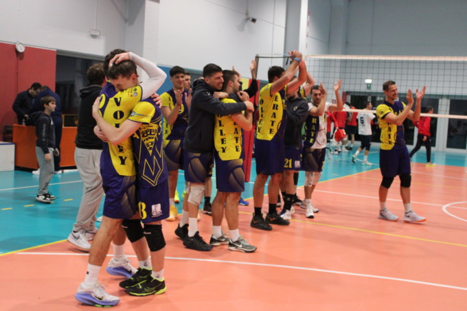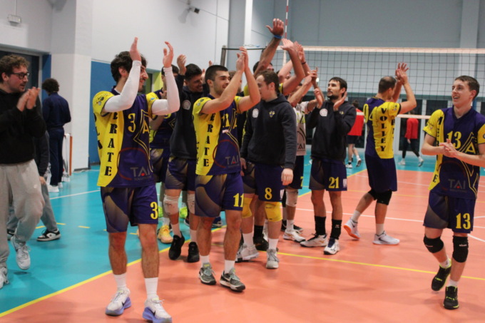 Quinto set, quello firmato dall’impresa di Merate. Cisano detta legge in avvio scavando un secco 0-4, con i gialloblù sempre ad inseguire anche al cambio campo (5-8). Cisano trova in Raffa due attacchi di peso portandosi sul 10-13. Il derby sembra colorarsi di tinte rossoblù ma Mhidou e Biffi sprecano il match point; Biava impatta da posto 4 (13-13) e il doppio monster block di Consani e Conci consegna la vittoria a Merate (15-13). Festa e applausi nel finale, il derby è gialloblù.