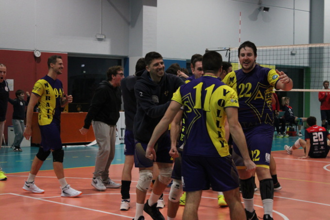 Scosso nell’orgoglio, la reazione di Cisano è da grande squadra. I rossoblù tornano a giocare su ritmi e binari a loro più congeniali: Mhidou e Biffi sono risoluti nei colpi di attacco e Cosa opta per i primi tempi di Austoni che creano non pochi problemi alla fase muro-difesa locale (12-18). Di Biffi il punto decisivo, che riapre la contesa (19-25). Quarto set vibrante. Merate risponde colpo su colpo all’iniziativa di Cisano e mette il muso avanti (13-11), prima che Biffi da posto 2 si scateni: di ben altra categoria l’opposto di Cisano che battezza ogni pallone per il controsorpasso ospite (17-19). Merate sciupa dal servizio e Cisano con un ritrovato Raffa in seconda linea scava il margine per risolvere il parziale, 21-25.