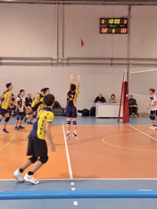 Quarta e ultima partita del girone contro la Pallavolo Sanavio. Buon inizio dei gialloblù che prendono subito qualche punto di vantaggio, fase centrale in equilibrio e allungo finale che permette a Merate di chiudere il set 25-19. Cambio campo e si riparte con i gialloblù al servizio, efficace tanto da far guadagnare subito un buon margine che aumenta nel corso del set fino alla vittoria finale di Merate (25-12).