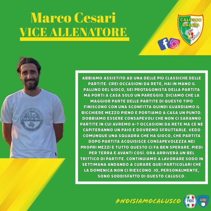 Al “Renzo Marzani” Calusco e Cividatese si dividono la posta in palio: finisce 2-2 con i ragazzi di mister Albergoni beffati in rimonta sul doppio vantaggio. In virtù di questo risultato, il Calusco prosegue la sua striscia di risultati positivi confermandosi al terzo posto del girone C di Promozione.