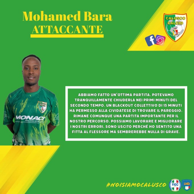 Venendo alla partita, a partire meglio sono gli ospiti: su una palla in uscita Pesenti scarica il destro poco sopra la porta di Luciano, poco dopo Minelli si destreggia bene in area e conclude rasoterra ma Luciano para basso. Al 18’ la Cividatese riparte molle, Lambiase intercetta e mette al centro per Di Nardo che non perdona rasoterra e sigla il vantaggio Calusco. I padroni di casa legittimano il vantaggio con una pregevole ripartenza al 12’ della ripresa: Lambiase brucia tuti con la sua velocità e serve poi Bara, che conclude in rete con un sinistro imprendibile.