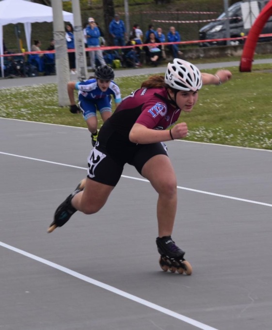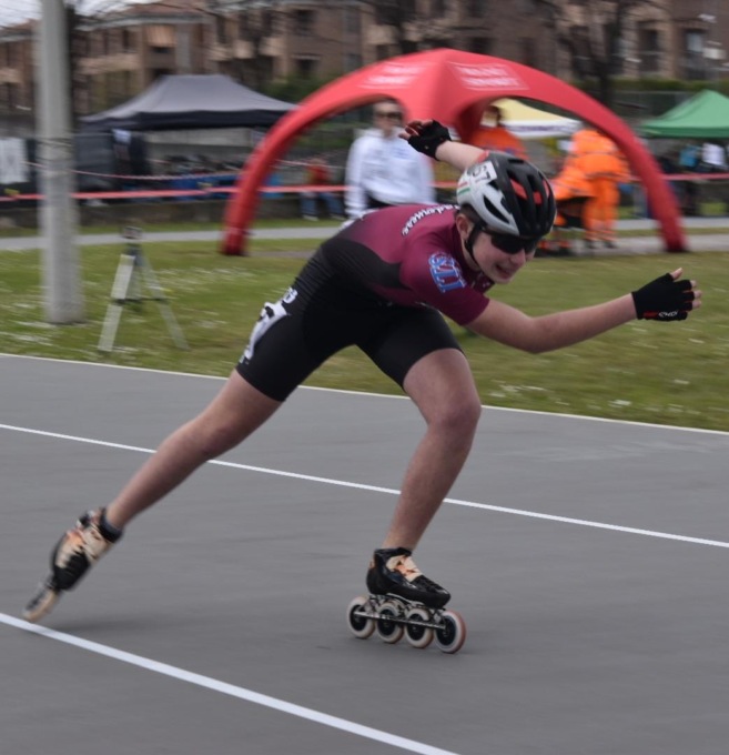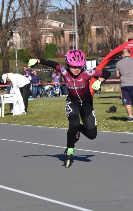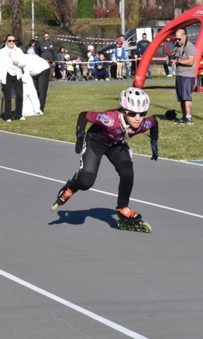 Al mattino di scena giovanissimi ed esordienti con Giulia Colombo, giovanissima, al suo esordio assoluto: emozionata, ma non timorosa, ha affrontato il suo primo impegno agonistico con grinta piazzandosi già a metà classifica. Tra gli esordienti grande determinazione per Diego Fumagalli e Ryan Catanzaro che si comportano molto bene. I risultati migliori arrivano nella pari categoria femminile: Rebecca Gargioni esordisce nell’agonismo senza paura, ottenendo lusinghieri piazzamenti in un lotto di partecipanti che si avvicinava al centinaio. Sofiia Dornopuk mette in luce evidenti progressi piazzandosi intorno alla trentesima posizione in tutte e tre le gare in programma. Irene Brezzolari ribadisce di soffrire un po’ le brevi distanze, ma si piazza ottimamente in 15° posizione nella 1000 m. in linea. Veronica Battù sorprende tutti e persino sé stessa chiudendo con un eccellente 4° crono nella prova dei 50 m. in corsia, ribadisce poi le sue doti da velocista con la 16° posizione nella 200 sprint. Veramente emozionante la finale della 1000 m in linea per Sofia Stetco che sfiora il podio, conquistando la medaglia di legno per pochi centesimi; già era stata 6° nella 50 m in corsia e 13° nella 200 m sprint.