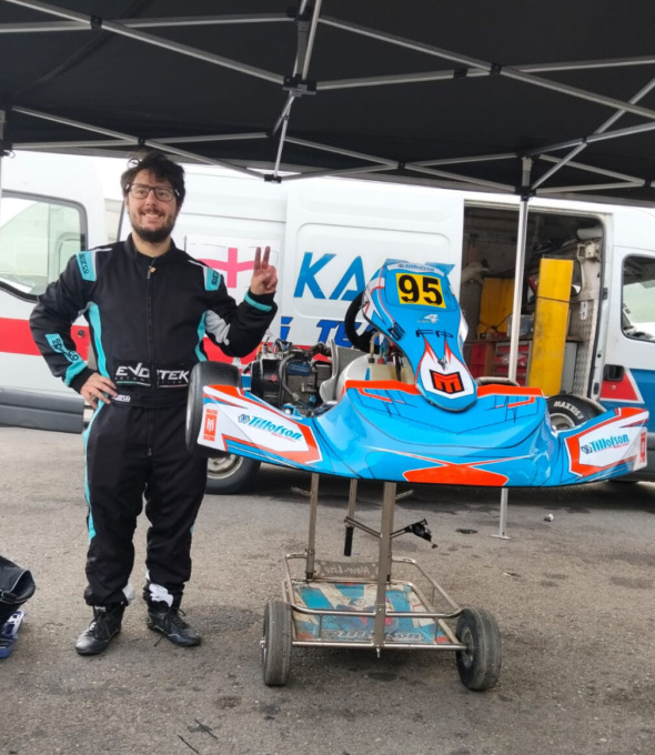 Partito in griglia di partenza quale ottavo assoluto, Bertelli ha necessariamente virato su una gara di rimonta naufragata da un contatto che l’ha relegato all’ultimo posto. “Mi sono girato con il kart, nell’erba bagnata. Ho rimesso in piedi il veicolo e ho proseguito fino alla fine ma ormai il gruppo se n’era andato. Ero arrabbiato, direi incarognito”. In Gara 2 il riscatto con il terzo posto assoluto, il primo nella classe Original: “Se ci penso ancora ho la pelle d’oca. Da ultimo a primo di classe, chi poteva aspettarselo? Sono partito ultimo in fila indiana come gli altri in attesa della partenza lanciata, sulla linea rossa prima dell’ultima curva si sono spenti i semafori e ho dato gas a manetta. Non so cosa sia successo precisamente ma forse perché il gruppetto di testa era quasi fermo mentre io mi stavo accodando, sono balzato di cinque posizioni in avanti. In quel momento avevo pensato che anche se avessi rischiato la partenza anticipata e mi fossi ritrovato con una penalità, non sarebbe cambiato molto essendo già ultimo. La cosa bella è che poi durante la gara ad ogni giro superavo i miei avversari e mi sono accorto che tenevo tranquillamente il passo degli altri. Ho chiuso a un decimo e mezzo dal secondo assoluto, primo di classe. La mia reazione? Sul traguardo ho staccato le mani sul volante. Non l’ho ancora metabolizzato, è la prima vittoria in un campionato tosto ed essere arrivato lì premia gli investimenti fatti in questo ultimo anno”.