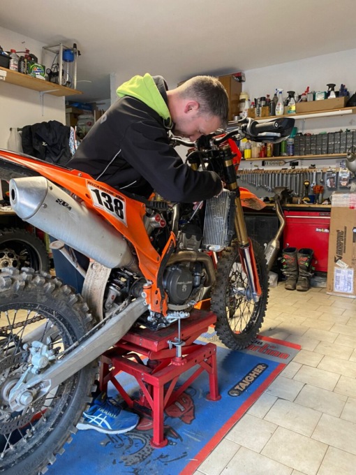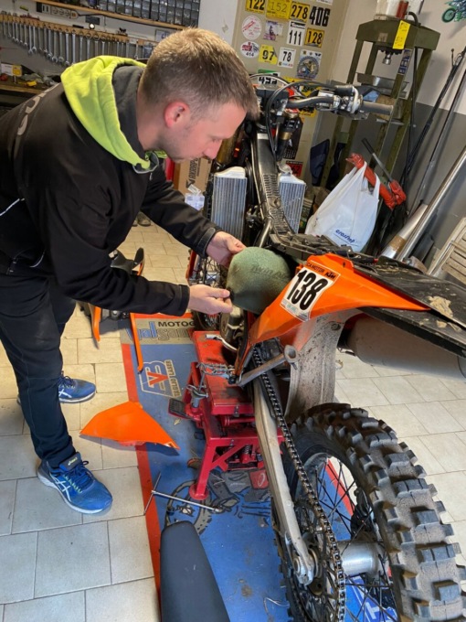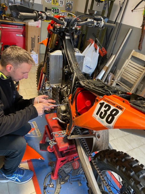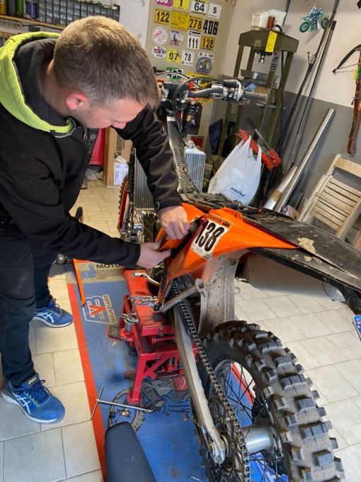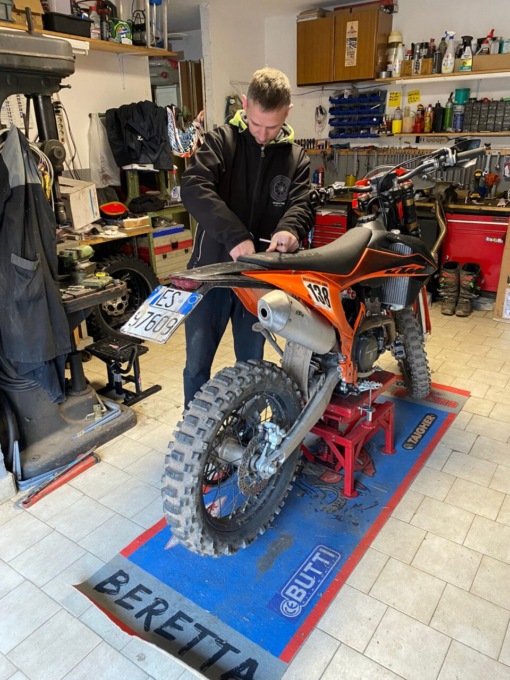 Della sua Ktm 250 è praticamente l’unico a metterci mano. Un po’ per la deformazione professionale di meccanico, un po’ per il modo di vivere l’enduro: lui e la sua moto. Con le sue sensazioni e nient’altro.