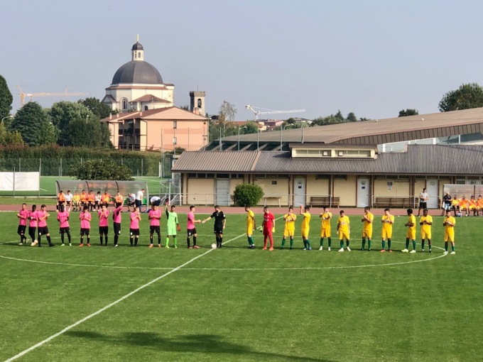 La contesa si apre con un primo sussulto a favore dei padroni di casa. Al 5′ Malvestiti è bravo ad arpionare un pallone di Botti che sembrava finire a lato, la sfera viene rimessa al centro in area dove l’accorrente Ivan Locatelli viene anticipato all’ultimo dalla retroguardia ospite.
