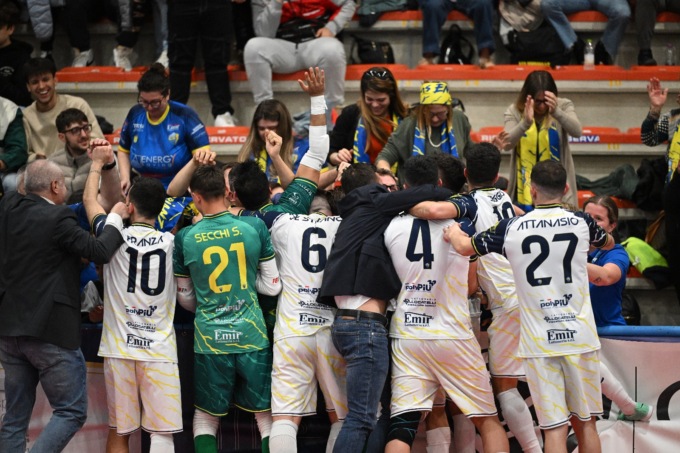È possibile esultare in casa Energy, la finale di Coppa Italia è realtà, dopo un match infinito risolto soltanto dai calci di rigore. La squadra allenata da mister Ferrari gioca benissimo e tiene testa ai veneti del Compagnia Malo, primi nel girone B di categoria, sfiorando un’impresa fermata soltanto a 53’’ dalla fine, dal gol del momentaneo pari avversario. Tuttavia, la gioia è stata solo rimandata, perché i calci di rigore hanno consegnato ai gialloblu una serata storica, quella della finale di Coppa Italia di Serie B. Il match che assegnerà il trofeo si terrà oggi, sabato 30 marzo, alle ore 15.00, contro il Mazara Futsal, formazione siciliana militante nel girone H.