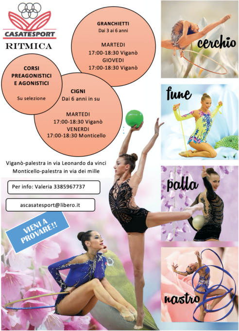 In Casatesport sono disponibili corsi per granchietti (bimbi dai 3 anni in su), tutti i martedì e giovedì dalle 17 alle 18.30 a Viganò nella palestra di via Leonardo da Vinci; corsi per cigni (dai 6 anni in su) tutti i martedì dalle 17 alle 18.30 sempre a Viganò mentre il venerdì alla stessa ora, dalle 17 alle 18.30, a Monticello Brianza (palestra di Via dei Mille).