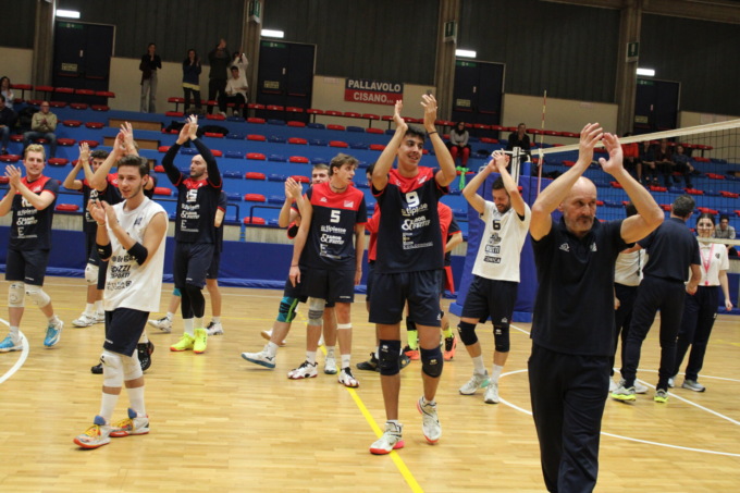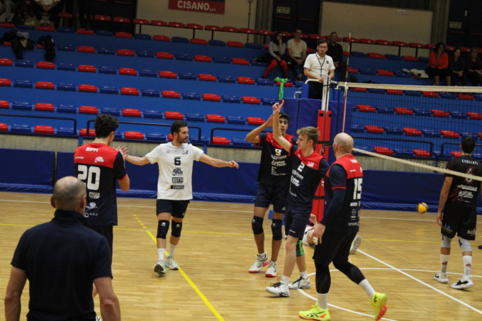 Terzo set, meno estetico ma quanto mai efficace. Cisano lancia il messaggio di voler chiudere la pratica ma si inceppa in una rotazione con i bresciani che si rianimano. Ancora Pellizzon da posto 2 e Sanchez al centro strappano per due volte (6-9, 10-14) ma sotto 11-16 Cisano si scuote. I primi tempi di Austoni danno il là per la rimonta locale, che si materializza con l’ace del centrale: 19 pari. Finale teso e pieno di errori da ambo le parti: Cisano controsorpassa sul 22-20 ma si fa rimontare ancora fino al 22 pari. Si va ai vantaggi, Valtrompia annulla con ardore i primi due match point ma sull’acuto di Biffi non può nulla: 27-25, festa Cisano.