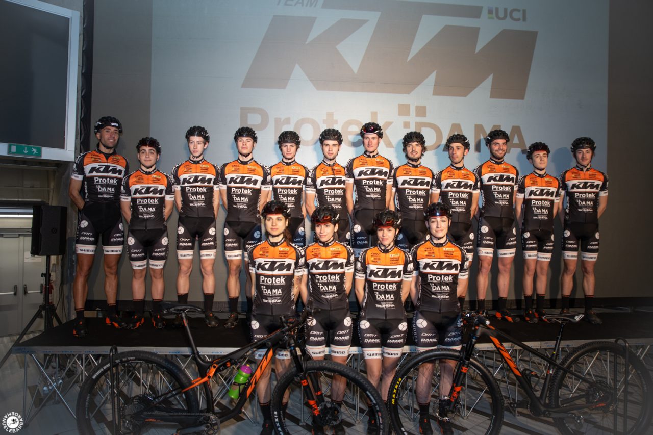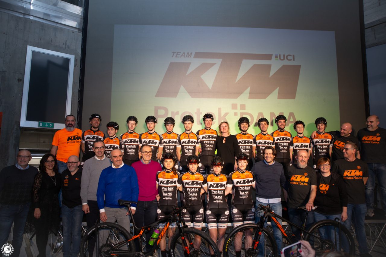 La scena conclusiva è stata riservata alla presentazione del Team agonistico, partendo dallo staff che seguirà il team durante la stagione composto da Alberto Milesi, meccanico, Valentina Milesi, responsabile trasferte, Enrico Rovelli, Direttore 3° livello, ed Andrea Jacobacci, responsabile logistica ed area tecnica, a seguire i bikers, iniziando con i due Allievi, Tommaso Nalin e Matteo Bianchini, gli Junior Marta Zanga, Mattia Beretta, Tommaso Pandini e Michael Pecis, gli Under 23, Giada Specia, Marika Tovo, Letizia Motalli, Juri Zanotti, Andreas Vittone e Emanuele Huez, concludendo con gli Elite, Alessio Agostinelli, Domenico Valerio e Mirko Tabacchi, ed il Master, Simone Colombo. La presentazione si è conclusa con la classica foto di rito ed un ricco aperitivo per tutti gli ospiti intervenuti all’evento illuminati da un fantastico tramonto che volgeva al colore arancio. Proprio come il KTM PROTEK DAMA.