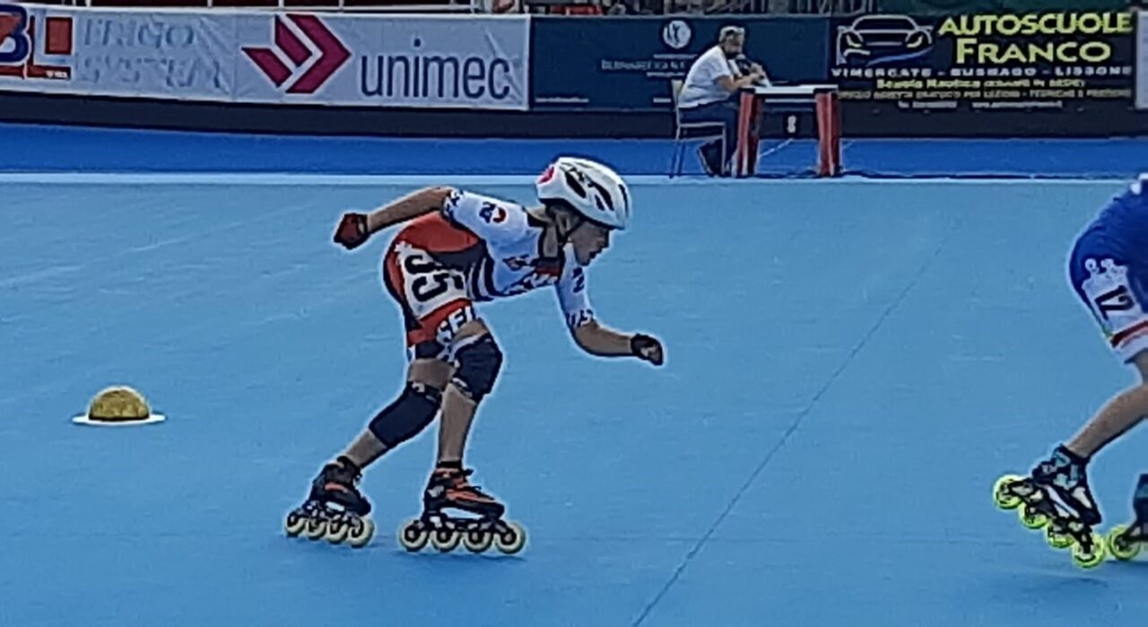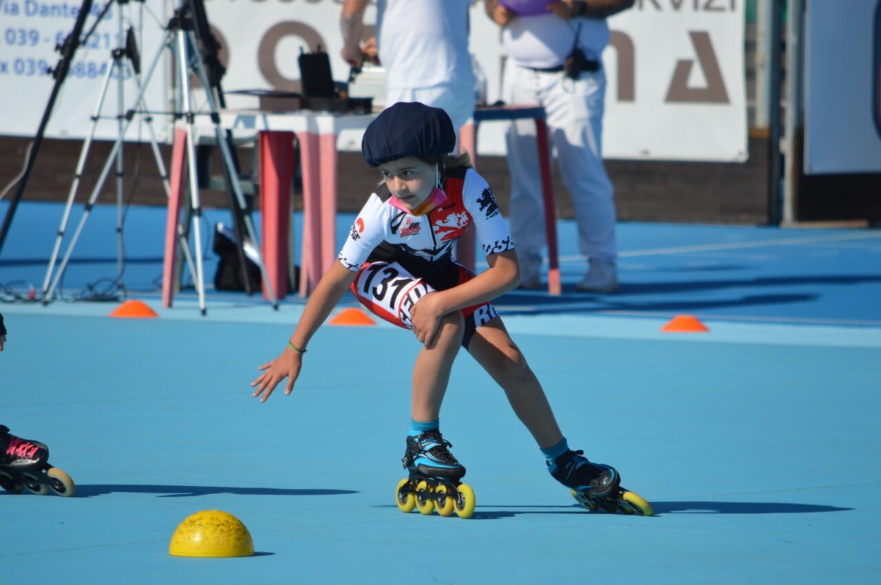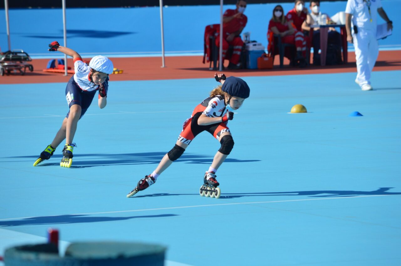 Nel pomeriggio è scesa in pista la categoria Giovanissimi, con il percorso Smile e i 5 giri in linea. Nella prima gara, Stetco Sofia ottiene il 14° posto, seguita da Cattaneo Irene al 28°. Le altre tre compagne, Buonocore Lia, Baccaro Ginevra, Loscocco Sofia si piazzano una dietro all’altra, ottenendo i le posizioni 30, 31 e 32 su 59 atlete. Nella stessa gara, della pari categoria maschile, il loro compagno Sambruna Manuel ottiene un bel 9° posto, coronato anche dall’ottimo risultato successivo. Per quanto riguarda la gara di resistenza, i 5 giri, vediamo Sofia S. salire in classifica alla 10^ posizione, 29esima Ginevra, 32esima Lia, 35 Irene e 38esima Sofia L.