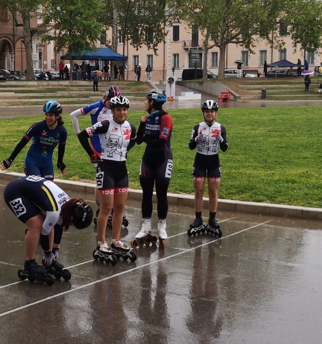 Al mattino corrono Giovanissimi ed Esordienti, arrivano da Cremona Ginevra Baccaro, Lia Buonocore e Giulia Paganini, giocandosela tutta per la loro prima volta sul circuito stradale cittadino di Ferrara contro altre 120 partecipanti. Con il meteo che interrompe più volte le gare, gareggiano nella 200mt sprint e nella 1000mt in linea: Lia (24° e 57°), Giulia (48° e 24°) e Ginevra (57° e 27°). Prosegue Emma Guntri, unica rappresentante delle Ragazze 12 che si piazza 61° nella sprint e 25° nella 2000mt a eliminazione. Tra le ragazze femmine, nella sprint Sofia Vago è 29° con Giorgia Fumagalli 30° seguite poco più indietro dalle altre rosedine Giada Fenu, Sofia Lorello, Gaia Varisco e Petra Galbiati. Nella 2000mt a eliminazione Giorgia Fumagalli si toglie qualche soddisfazione con un ottavo posto in finale, mentre le compagne seguono leggermente distanziate ma contente di aver completato una difficile giornata di gare.