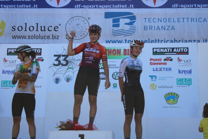 In campo femminile invece la gara è stata meno tattica ed ha avuto una vera dominatrice. A trionfare all’arrivo infatti tra le donne è stata la feltrina Giorgia Marchet che per il secondo anno porta in alto i colori del KTM–Protek-Elettrosystem nella classifica femminile. La biker 24enne vincitrice quest’anno degli Internazionali d’Italia Series è incappata con altri in un errore di percorso , ma non si è persa d’animo ed ha recuperato parecchio terreno, collaborando anche con il compagno di team, lo junior Federico Brafa.