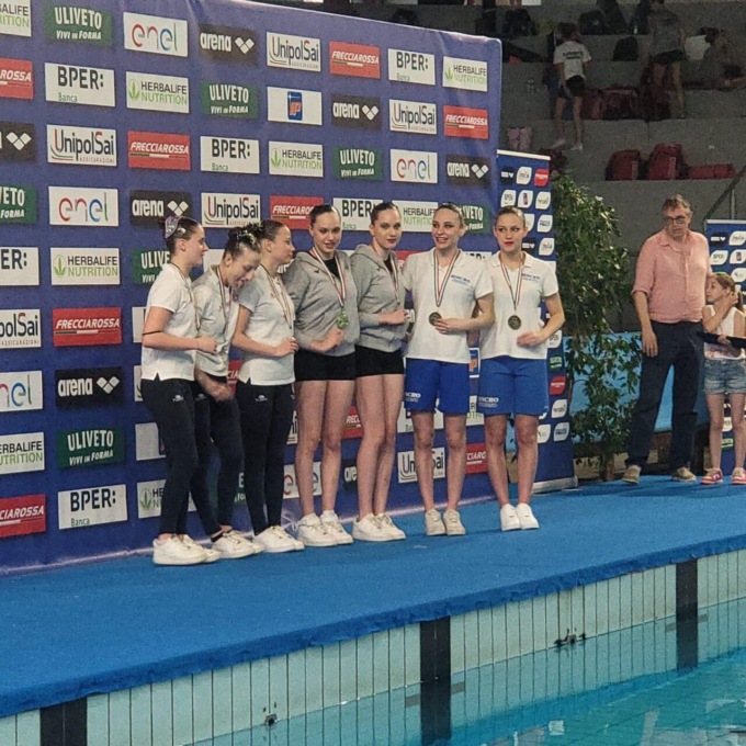 A contribuire al risultato complessivo della squadra c’era anche la calchese Alice Zadek. Alice ha vinto il bronzo nell’esercizio doppio con Alice Garraffo e una medaglia d’argento con la squadra. Una manifestazione importante, a conclusione di un anno da ricordare dopo anche le gioie personali ottenute in vasca europea.