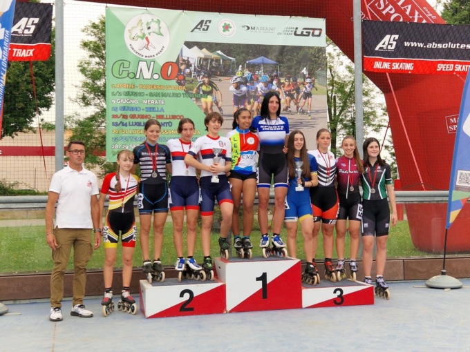 Tra le allieve, Elisa Viscardi conquista il 20mo posto nella gara sprint e un discreto 25mo posto nella gara di resistenza, continuando il trend di miglioramento. Notevoli i posizionamenti di Giorgia Stetco, rispettivamente 13ma nella sprint e 20ma nella gara lunga. Cora Gualtieri consolida il proprio trend di potenziamento personale guadagnando la 7ma posizione nella gara corta e la 11ma piazza nella lunga. Nella categoria Juoniores, Piloni Angelica ottiene un ottimo secondo posto nella gara sprint, mentre una decisione severa dei giudici la esclude dai giochi nella gara lunga. Christian Vignazza ottiene un bel 4to posto nella gara corta e ottimo quinto nella dura 8000 metri ad eliminazione, mentre Riccardo Baietta, penalizzato dalle sue doti di resistenza che poco si addicono alla gara corta, ottiene un discreto 6to posto nella gara ad eliminazione. Nella massima categoria Seniores, Matilde Crotta torna alle gare dopo una lunga assenza con un lusinghiero 8vo posto nella gara sprint ed un 9no posto nella dura gara ad eliminazione. Lato maschile, Michele Merlini conquista un meritato primo posto nella gara sprint accompagnato da una emozionante prestazione, con un piazzamento a metà classifica nella lunga gara a punti; d’altro canto, Gabriele Baietta brilla nella gara di resistenza ottenendo un lusinghiero secondo posto, mentre nella non congeniale gara sprint si piazza al 7mo posto.