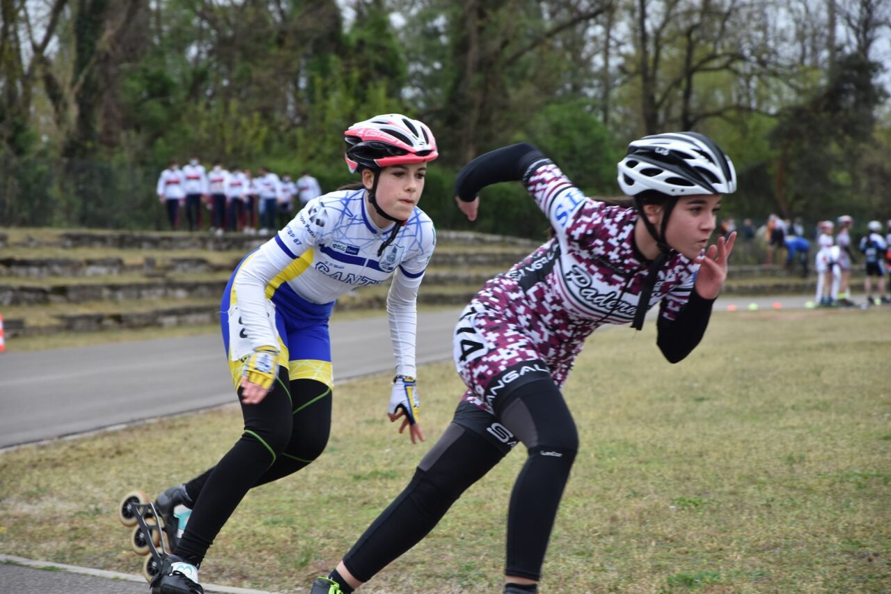 15 agli atleti in gara per la Padernese al pattinodromo di Cassano d’Adda. Prestazioni ottime dalle ragazze, categoria molto numerosa con 60 atlete in gara, allenate da Gianni Pavarelli e Beppe Silva per la 300m sprint, Angelica Piloni e Asia Bailo, dopo un ottima gara, si sono aggiudicate argento e bronzo. Nella stessa gara con il 15° e 16°posto, Aida Ciurleo e Cora Gualtieri, accedono direttamente al campionato italiano. 39° e 44° per Chiara Maggio e Emma Facoetti che non sono riuscite a rientrare nella qualificata. Buono anche nella difficile m.3000 a punti con il 5° posto di Piloni, l’8° per Bailo, il 9° per Gualtieri e il 14° per Ciurleo, poco più indietro Maggio e Facoetti. Nella stessa categoria maschile con gara a sprint 19° e 26° posto per Leonardo Faedda e Riccardo Savardi.