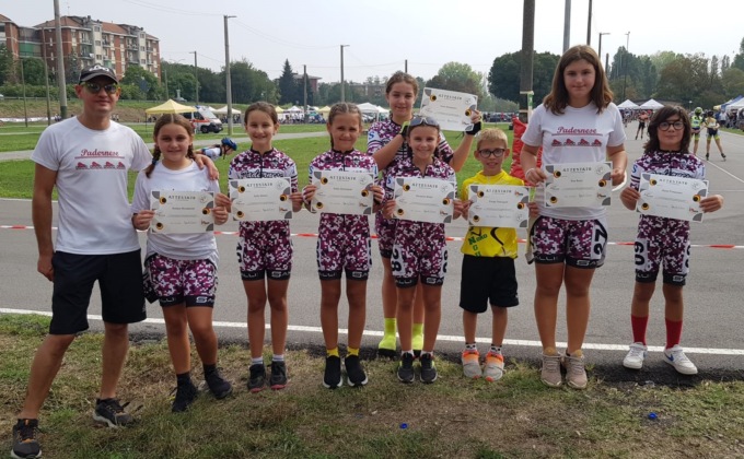 Al mattino i giovanissimi-esordienti si sono dati battaglia con le solite gare con la discussa, ma obbligatoria “formula Tiezzi” che prevede tutte prove cronometrate su breve e lunga distanza. Come sempre brillante nella gara sprint Eva Bailo raggiunge il sesto crono sull’immenso lotto di 108 mini atlete al via. Sofia Stetco si destreggia benissimo sia nella sprint che nella 1000m con un 8° e un 15° posto che le valgono una brillante 10° posizione in classifica combinata. In crescita Veronica Battù e Brezzolari Irene. Un po’ sotto le prestazioni che ha raggiunto nelle ultime gare Alessia Manzocchi, giornata sfortunata per lei; la dolce bambina ucraina Sofiia Dornopuk torna alle gare con buona tenacia ed energia. I due maschietti Diego Ripamonti tra i giovanissimi e Ryan Catanzaro negli esordienti cercano sempre di dare il meglio, dovendo attendere di “irrobustirsi” un pochino nel fisico per poter lottare alla pari. Nel pomeriggio i più grandi: tra i ragazzi in miglioramento sia Lorenzo Battù che Daniel Vignazza e tra le ragazze soffre un poco i 2 mesi di stop Elisa Viscardi.