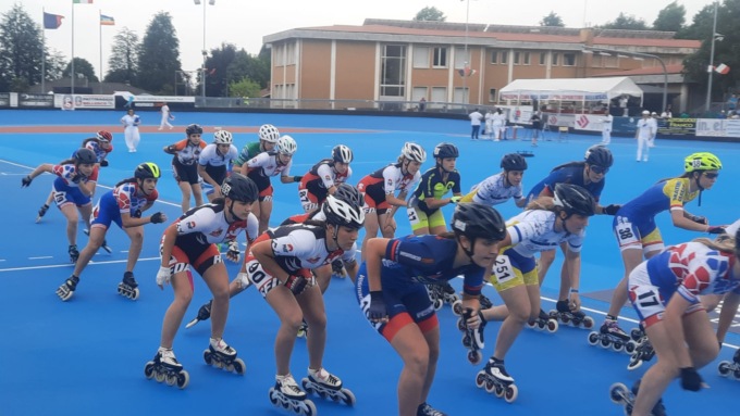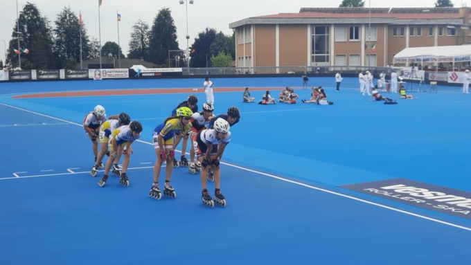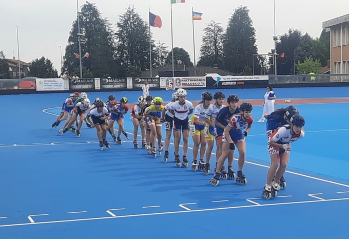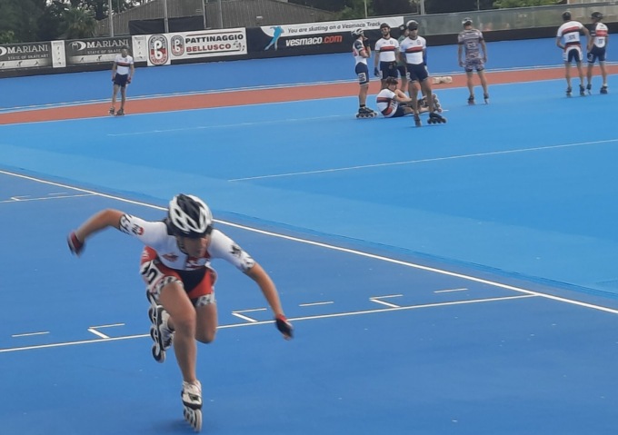 Subito dopo si passa alle distanze più lunghe, da percorrere per gli atleti 10km con i traguardi a eliminazione. Splendidi i risultati per gli atleti rosedini, partendo dalla categoria Junior, dove Rebecca chiude al 3° posto, Giuditta ancora al 5°, Greta al 14°, Matilde Pin 15° e Giulia più indietro, chiude in 18ª posizione. Ottimo il piazzamento di Matilde Elli che nella categoria delle più grandi, nella quale erano presenti anche atlete campionesse mondiali ed europee si piazza 12ª. Tra i rappresentanti maschili Davide migliora il piazzamento rispetto alla gara corta (25°), Andrea (14°) e Luca Mauri, che dopo un problema tecnico al pattino era stato costretto a ritirarsi dalla prova sprint, conquista il 15° posto. Al termine delle gare, si svolge la prova sul giro lanciato e Rebecca fa registrare il miglior tempo nella categoria Junior femmine.