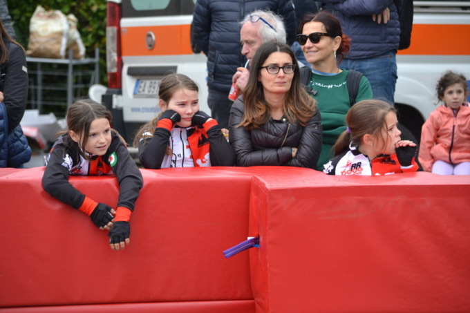 Proseguendo la mattinata le categorie più giovani, Giovanissimi ed Esordienti, hanno corso le rispettive gare con classifica totale in formula Tiezzi e quindi unica chance di gara di raggiungere il miglior risultato, con podio per la combinata. Un piacere per il cuore di tutti vedere sia gli oramai scafati Esordienti sia gli scriccioli Giovanissimi aggressivi in pista, ostentando indifferenza per la pioggia e soprattutto per le prime difficoltà della pista bagnata.
