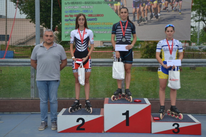 Anche nel maschile Davide Premi non ottiene il biglietto per la finale per un solo pattino chiudendo in settima posizione. E’ nella categoria Seniores che arrivano gli ultimi podi rosedini del loro trofeo: quasi un rito il secondo gradino del podio per Rebecca Valagussa, Elli Matilde sesta e Matilde Pin nona concludono le loro fatiche. E’ invece con il Seniores Mar Serigne Bassirou che la Roseda urla prima di paura per una sbandata in partenza ed infine di gioia, finalmente il suo beniamino, in odore di possibili convocazioni in Nazionale, sale di diritto a podio sul terzo gradino, anche lui incredulo del piccolo miracolo compiuto dopo la partenza da panico.
