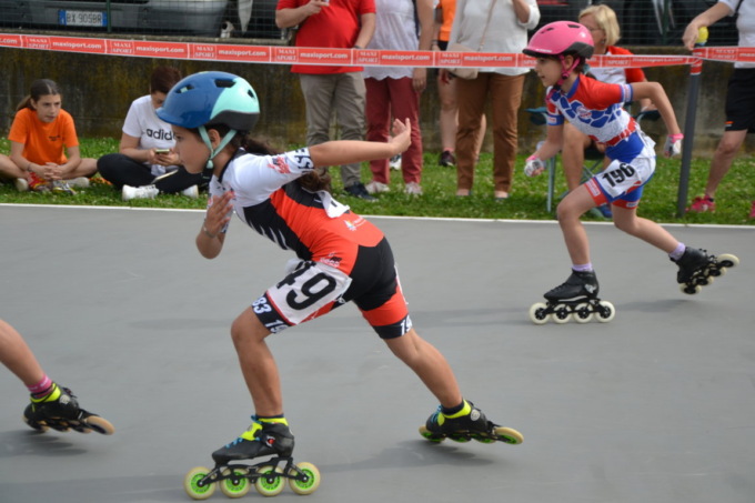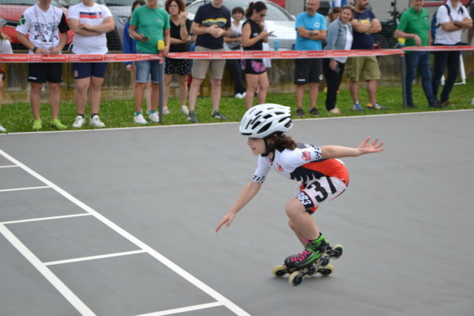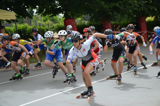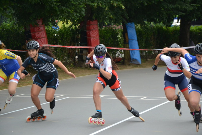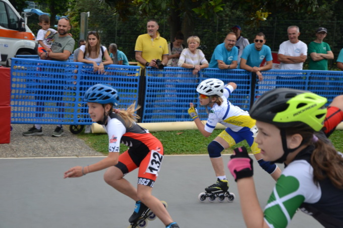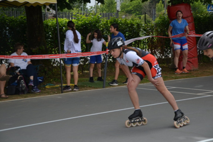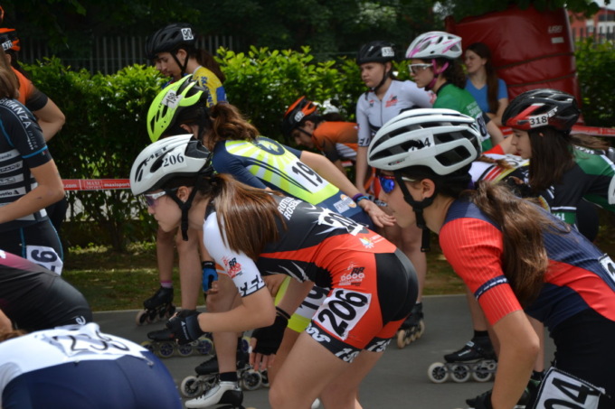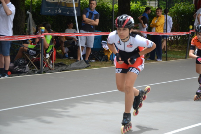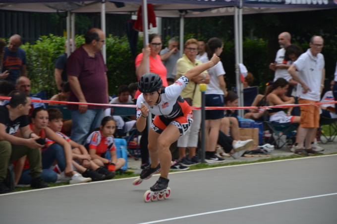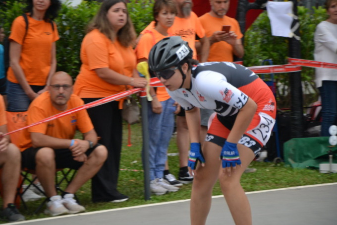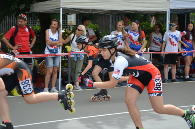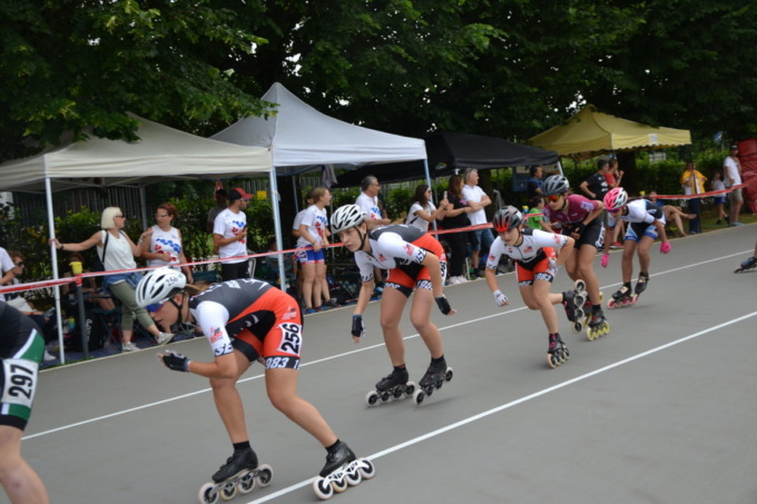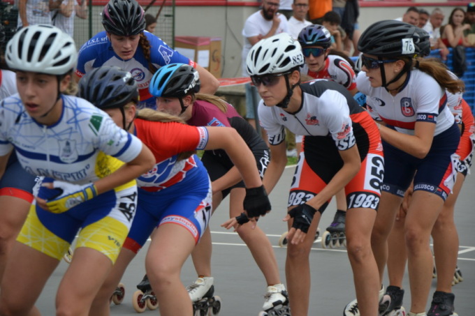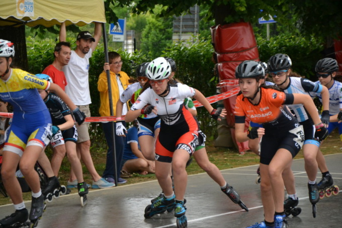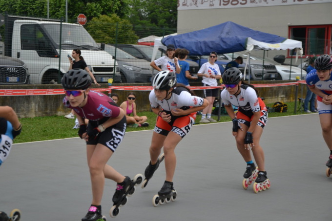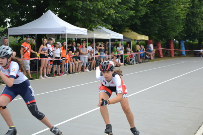Podi, pausa e si riprende nel primo pomeriggio con previsioni Meteo confuse che obbligano a Giuria a cambiare e poi ancora a ricambiare l’ordine delle gare. Alla fine si decide di cominciare per tutte le categorie con le gare lunghe. Una leggera pioggia iniziale da nuvole per fortuna solo di passaggio obbligherà le atlete convocate in categoria Ragazze della seconda batteria per la 3000m a puntiad un rapido cambio di ruote, così è il pattinaggio corsa. Qui le rosedine sono tante: superano le batterie in tre per andare a concludere le finali prima della fine della giornata Giada Fenu che concluderà brava 11 a, Gloria Ripamonti correrà con la maglia del Canguro ottenuta la settimana prima per la 22a posizione, Sofia Lorello invece 23a. Le compagne Emma Guntri, Gaia Varisco, Sara Aldeni e Arianna Marasco nella seconda parte della classifica.