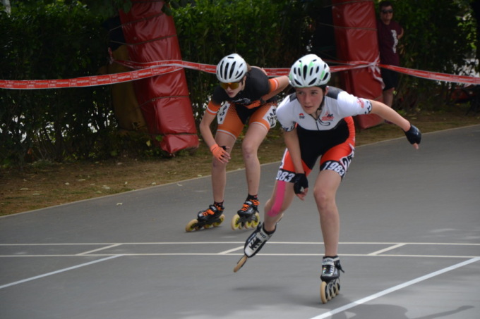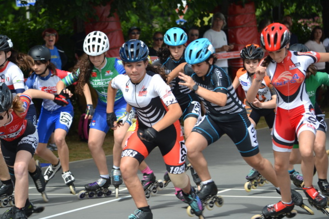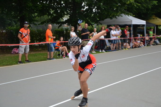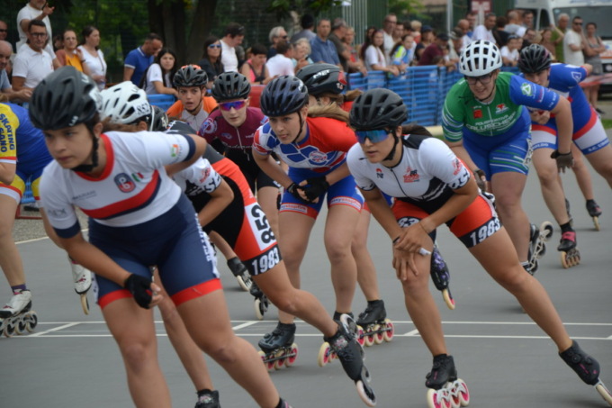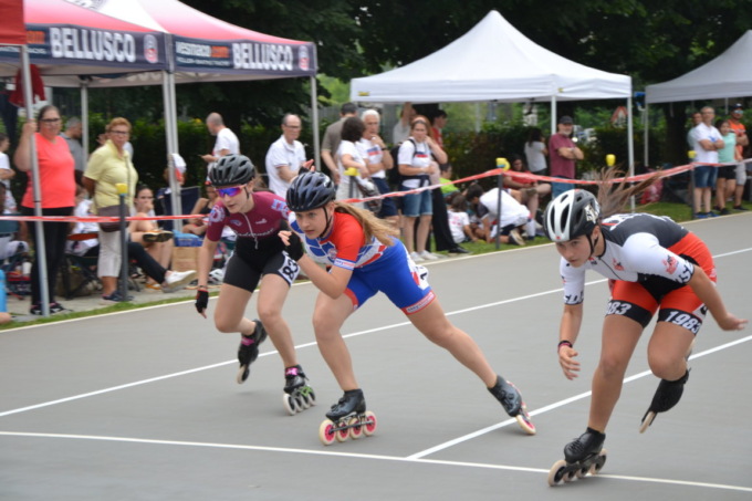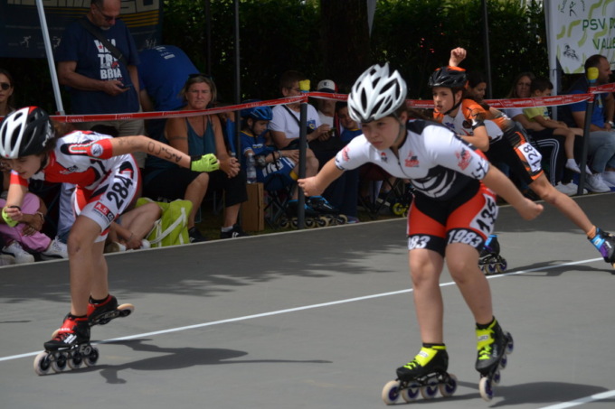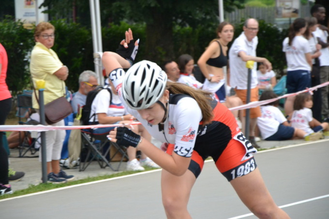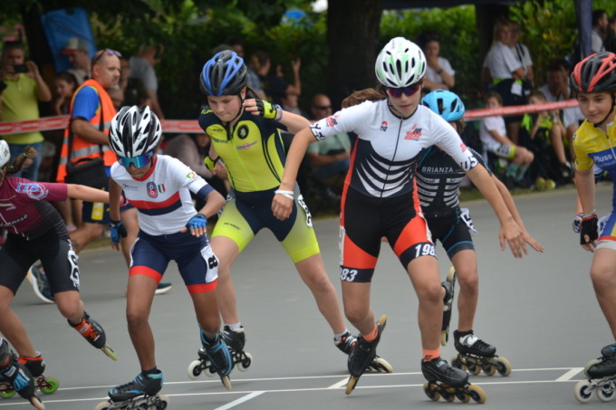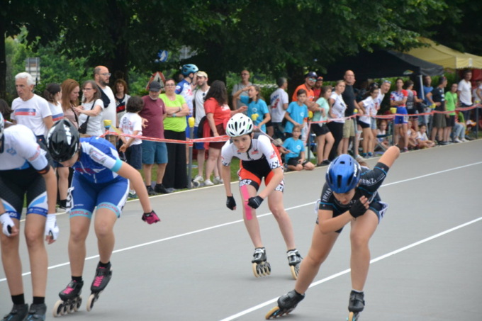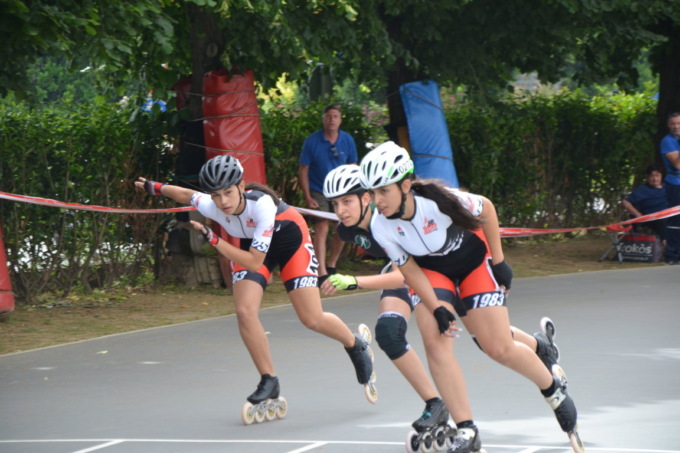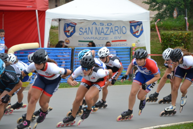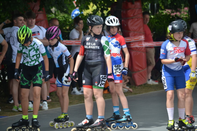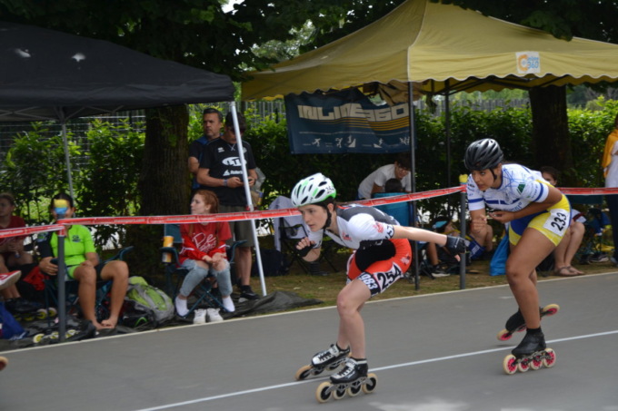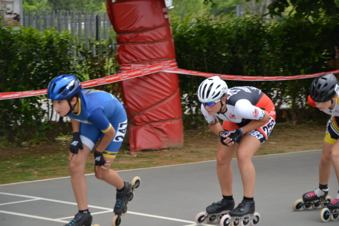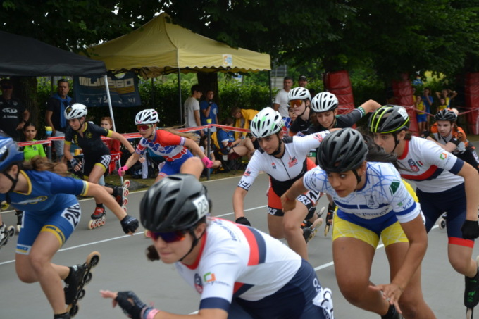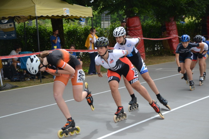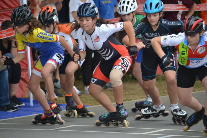 Podi, pausa e si riprende nel primo pomeriggio con previsioni Meteo confuse che obbligano a Giuria a cambiare e poi ancora a ricambiare l’ordine delle gare. Alla fine si decide di cominciare per tutte le categorie con le gare lunghe. Una leggera pioggia iniziale da nuvole per fortuna solo di passaggio obbligherà le atlete convocate in categoria Ragazze della seconda batteria per la 3000m a puntiad un rapido cambio di ruote, così è il pattinaggio corsa. Qui le rosedine sono tante: superano le batterie in tre per andare a concludere le finali prima della fine della giornata Giada Fenu che concluderà brava 11 a, Gloria Ripamonti correrà con la maglia del Canguro ottenuta la settimana prima per la 22a posizione, Sofia Lorello invece 23a. Le compagne Emma Guntri, Gaia Varisco, Sara Aldeni e Arianna Marasco nella seconda parte della classifica.