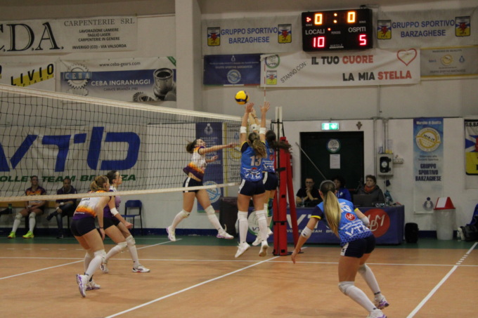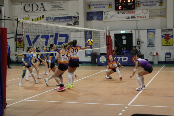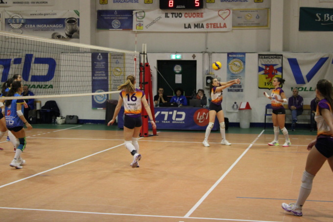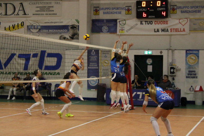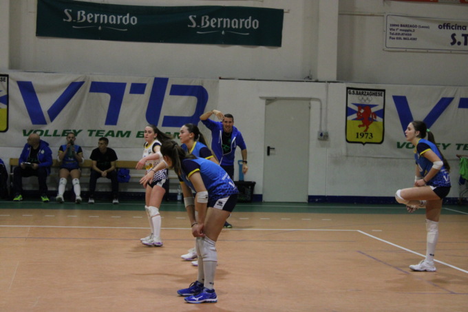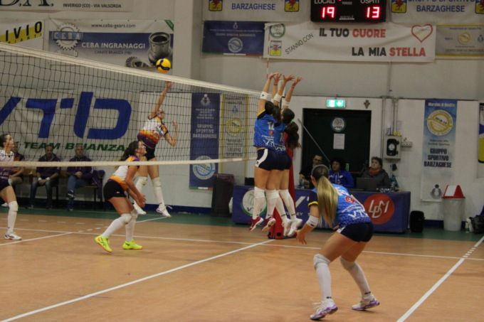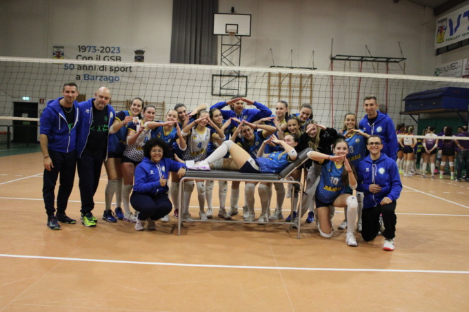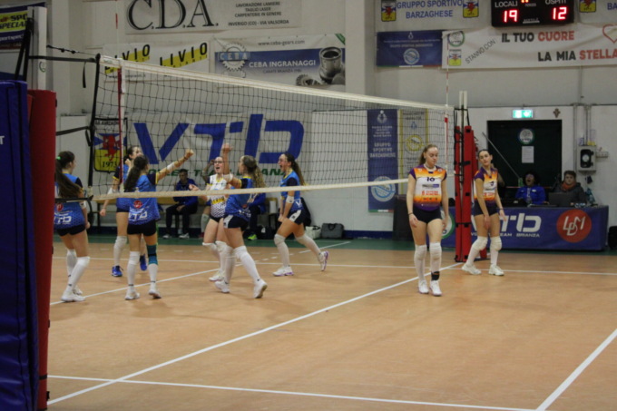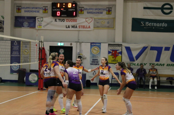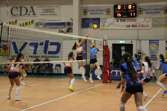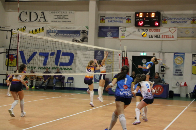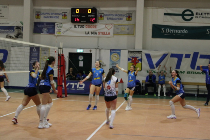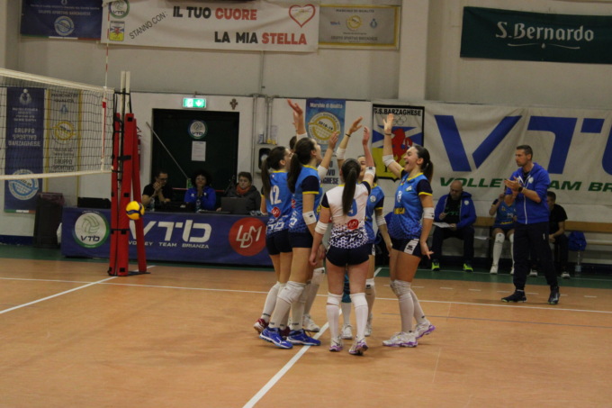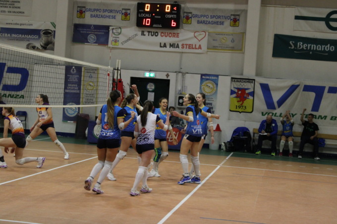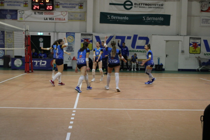 Terzo set. Penati scuote le sue ragazze, che finalmente reagiscono trovandosi per la prima volta avanti nell’arco del match con Molteni. Barzago tuttavia risponde colpo su colpo e trova da l servizio il break per scavare il controsorpasso, questa volta con Scambia (5-4). È il punto che proietta Vtb in avanti e grazie alla capitana Rusconi legittima fino al 14-7. Da qui, ahimé tardivamente, Nibionno rialza la testa e fa male dal servizio, prima con Villa e Crocco. Si gioca punto a punto con le ospiti a rintuzzare fino al 17-14 ma le barzaghesi sono lucide quanto basta per non dilapidare il vantaggio. L’attacco finale di Fumagalli regala la festa Vtb, dedicata a Ornaghi uscita nel finale di set per infortunio.