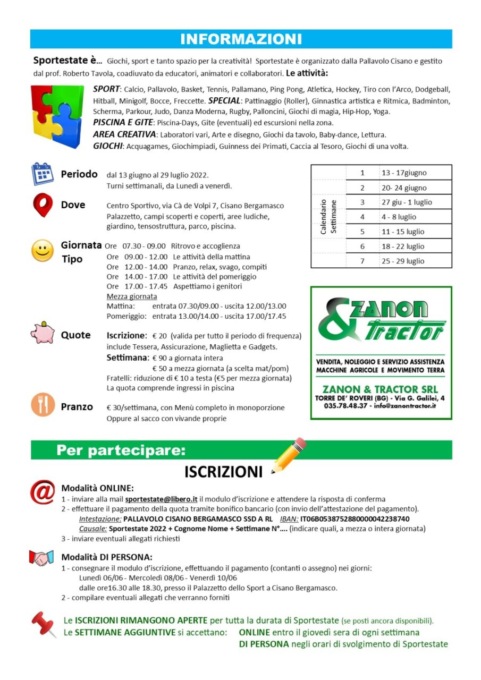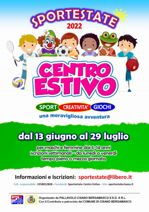 Una meravigliosa avventura è pronta ad accendere l’estate 2022. Torna “Sportestate”, il centro estivo organizzato dalla Pallavolo Cisano con il contributo e il patrocinio del Comune di Cisano Bergamasco. Dal 13 giugno al 29 luglio sport, creatività, giochi e tanto altro.