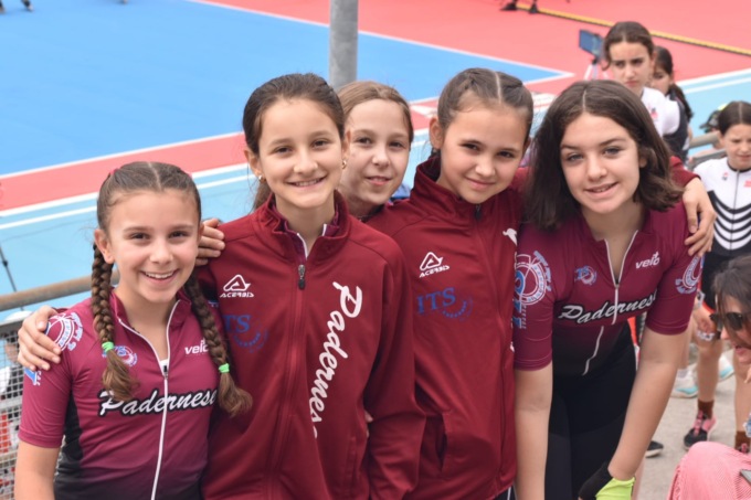 Splendidi nel positivo e giocoso approccio alla competizione i più giovani padernesi: affrontano il difficile campionato regionale in pista piana le giovanissime Gaia Colosi e Giulia Colombo, gli esordienti Diego Fumagalli e Ryan Catanzaro e le compagne Ilenia Picciau, Irene Brezzolari, Sofiia Dornopuk, Sofia Stetco e Veronica Battù. Tutti bravissimi e con tanto impegno profuso. Risultati di rilievo per Sofia Stetco nella sprint con un eccellente 7° posto e Veronica Battù ottimamente 10° nella 8 giri in linea.